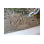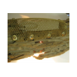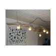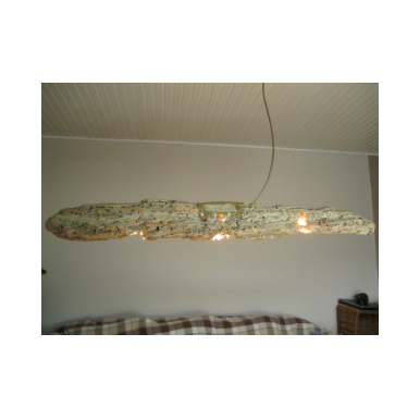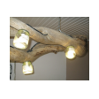 Hängelampe Pfosten roh und unbehandelt, mit 3 Paulmann Einbauleuchten Premium-Line Alu-Zink Gold. Aufhängung über zwei transparente Angelschnüre, dadurch wirkt es, als schwebe sie im Raum. (Paulmann Artikel: 993.18, Leuchtmittel: 3 x 20 Watt, Spannung: 230V/12V, Trafoleistung: 105 VA, Sockel: GU4, Energieeffizienz: C, Technik: 12 Volt Halogen/Umbau auf LED möglich)