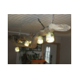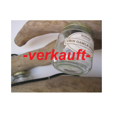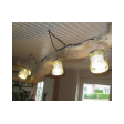 Hängelampe Holz klarlackiert, mit 6 Spots, mit G10 Keramikfassung eingebaut in dänische Marmeladengläser.