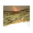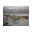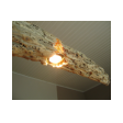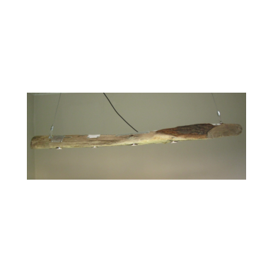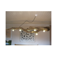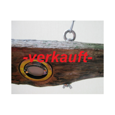 Hängelampe Holzpfahl roh und unbehandelt, mit 6 Paulmann Einbauspots Downlight chrom. Variable Aufhängung über zwei ummantelte Stahlseile mit Seilklemmen. (Paulmann Artikel: 985.73, Leuchtmittel: 6 x 10 Watt, Spannung: 230V/12V, Trafoleistung: 60 VA,  Sockel: G4, Energieeffizienz: C, Technik: 12 Volt Halogen/Umbau auf LED möglich.)