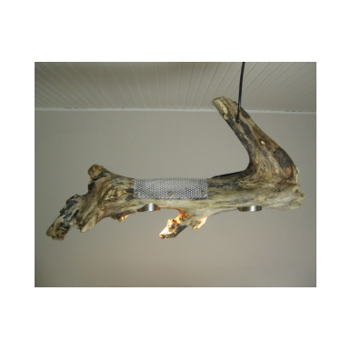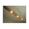 Hängelampe Aststück roh und unbehandelt, mit 2 Paulmann Einbauleuchten Micro-Line Eisen gebürstet. Aufhängung über zwei transparente Angelschnüre, dadurch wirkt es, als schwebe sie im Raum. (Paulmann Artikel: 831.17, Leuchtmittel: 2 x 20 Watt, Spannung: 230V/12V, Trafoleistung: 60 VA, Sockel: GU4, Energieeffizienz: C, Technik: 12 Volt Halogen/Umbau auf LED möglich)