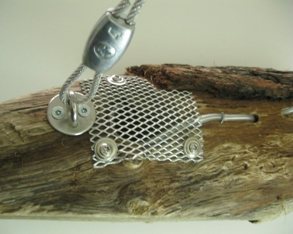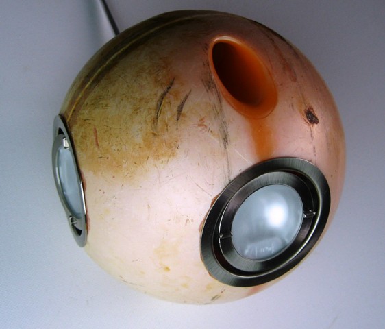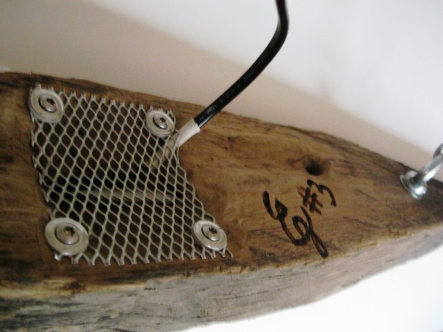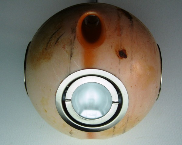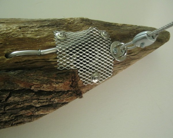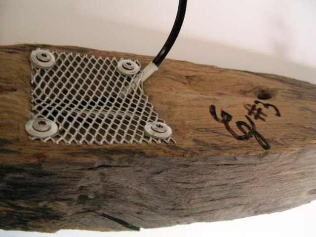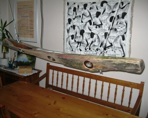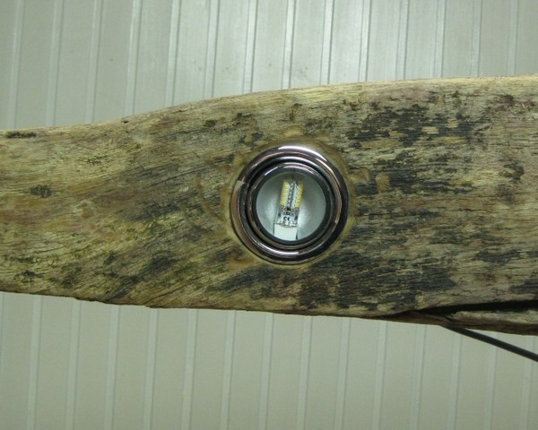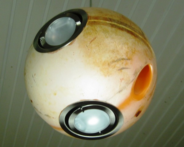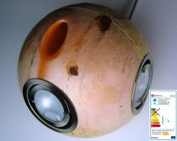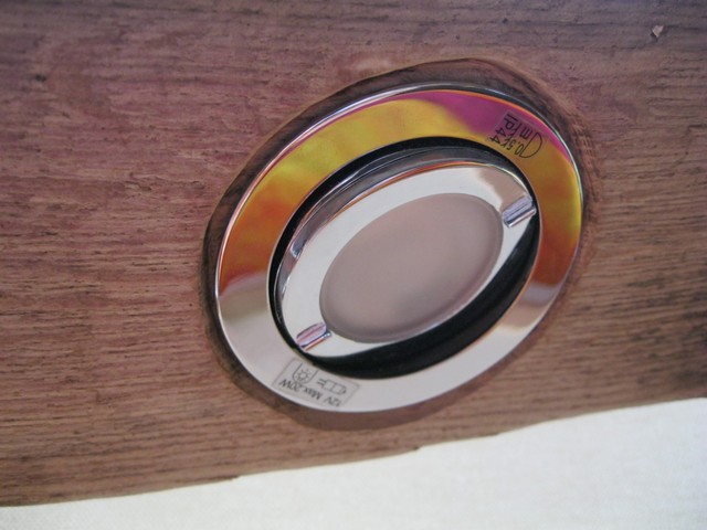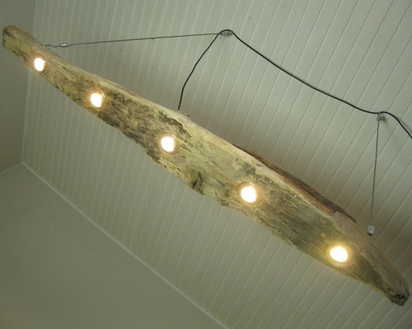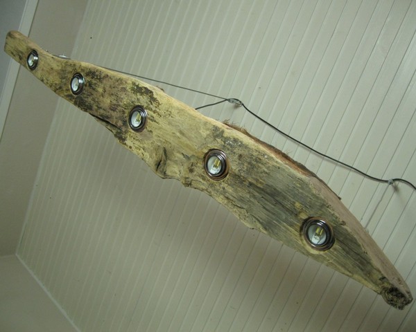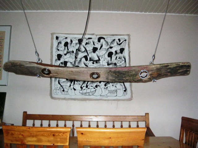 Hängelampe Schwimmer unbehandelt, mit 3 schwenkbaren Paulmann Einbauleuchten Micro-Line Dress Eisen gebürstet. Variable Aufhängung über die Zuleitung. (Paulmann Artikel: 935.21 , Leuchtmittel: 3 x 20 Watt Halogen, Spannung: 230V/12V, Trafoleistung: 60 VA, Sockel: G4, Energieeffizienz: C, Technik: 12 Volt Halogen)