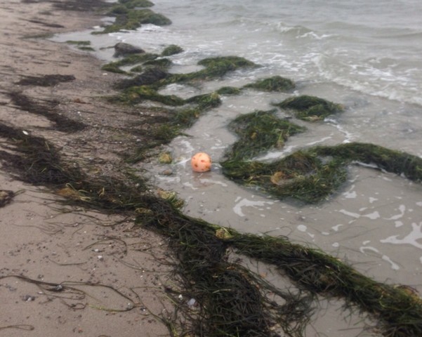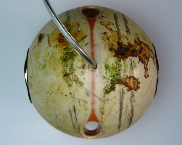 Treibgut Fischernetzschwimmer am Südstrand von Fehmarn - Burgtiefe gefunden (54°24'43.1"N 11°13'26.2"E).